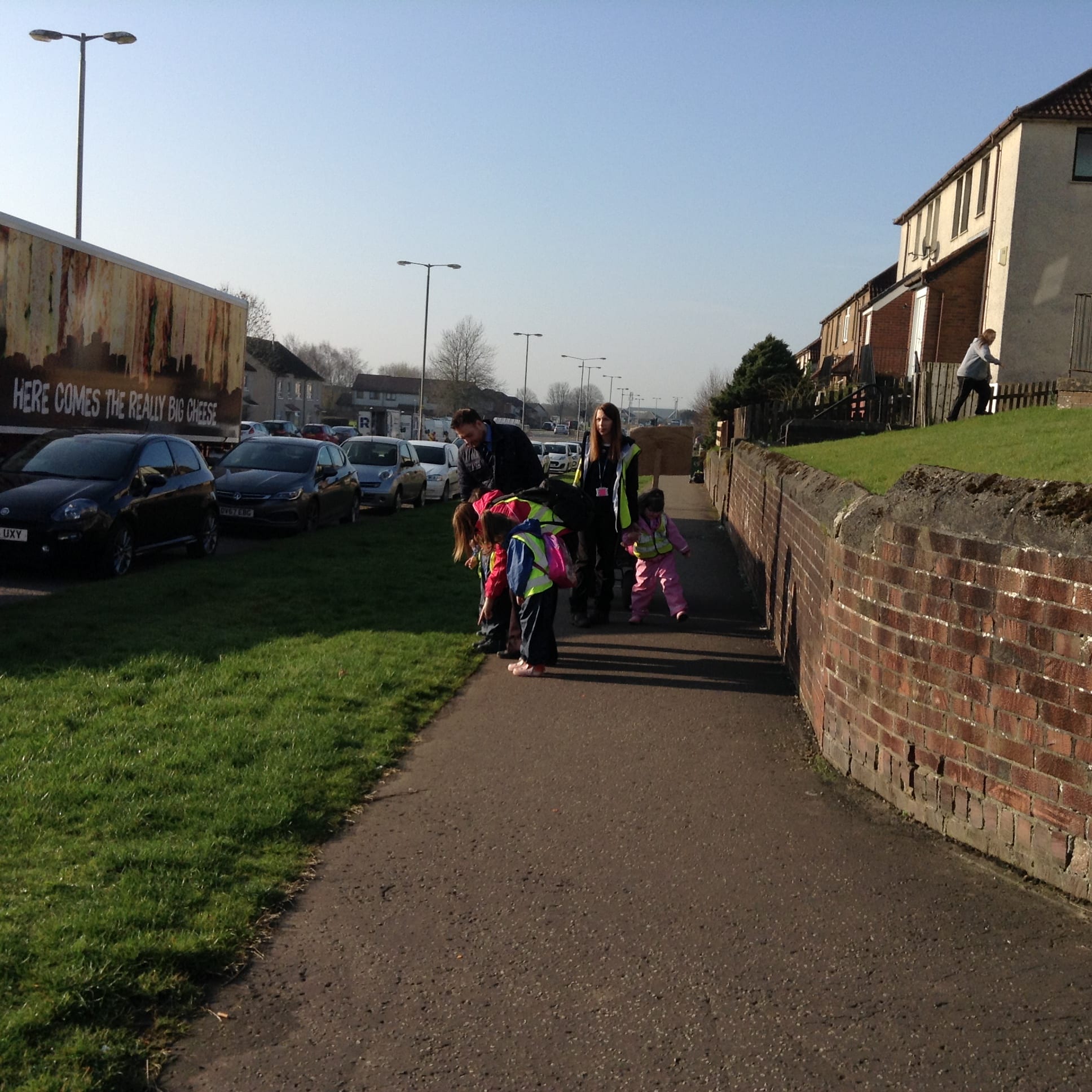Before we crossed the road we made sure we stopped, looked and listened at the kerb.