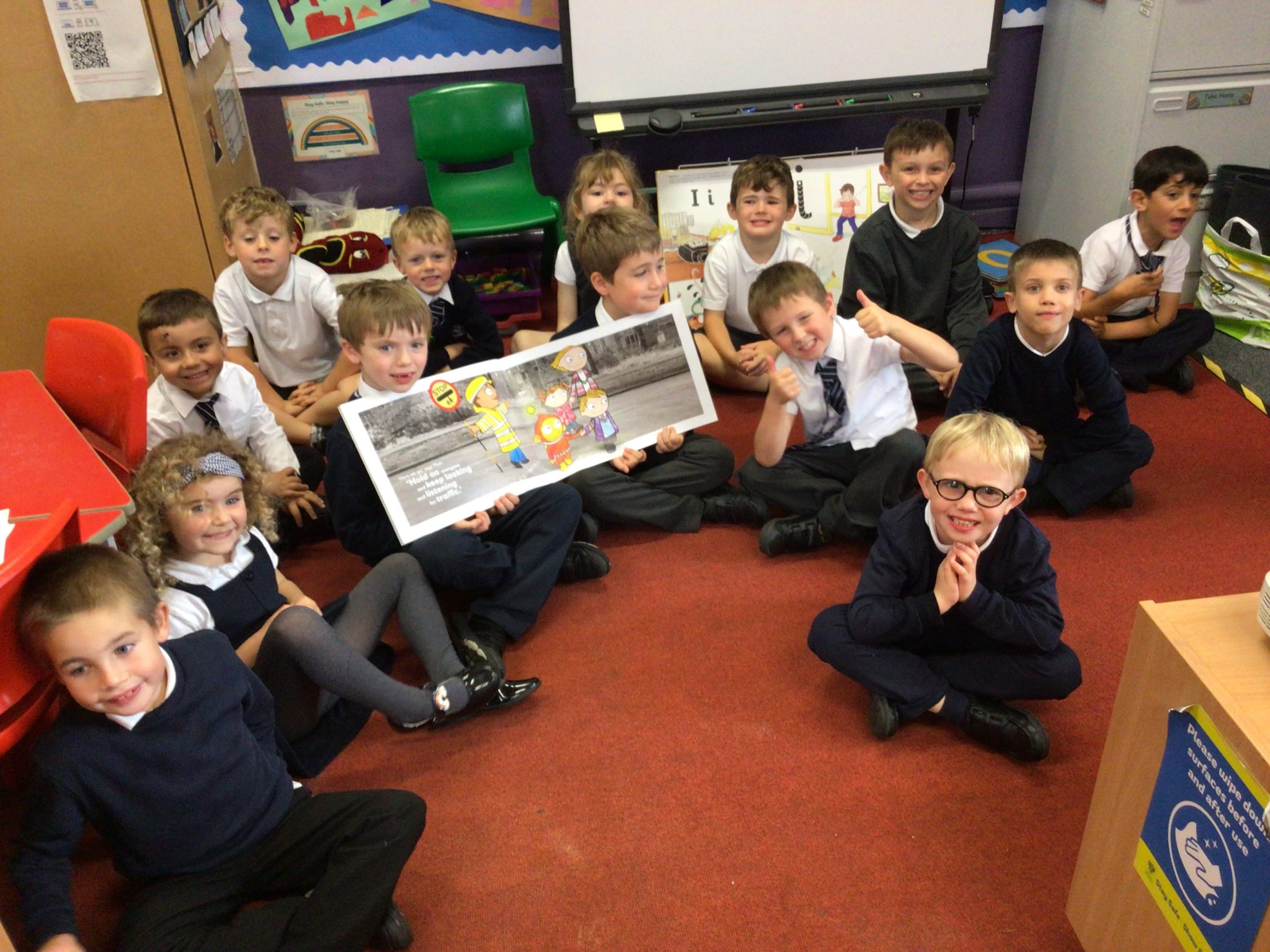 After all that walking, we went back to our school and learned about road safety.