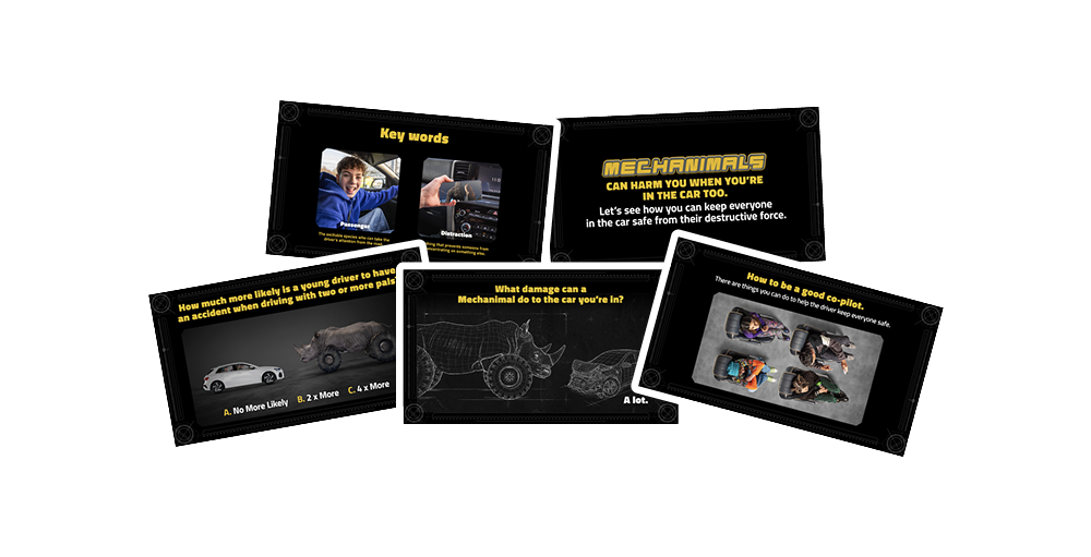 Progress on to think about ‘what type of passenger are you?’. Discuss how passengers can make things more difficult for the driver. Explain how certain behaviours distract the driver and increase your chance of a terrible collision with a Mechanimal.